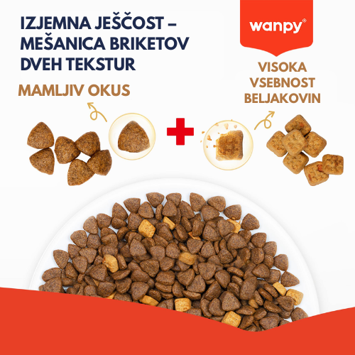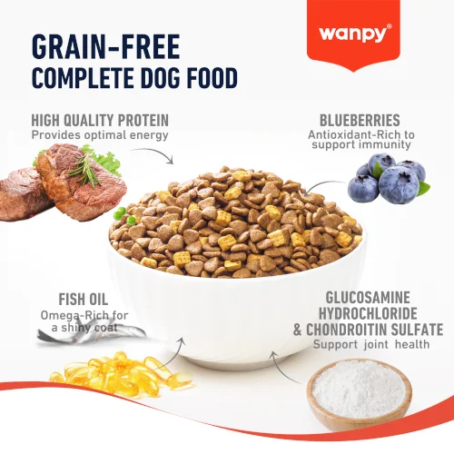 Wanpy s piščancem grain free je popolna, brezžitna briketirana hrana za odrasle pse, pripravljena z okusnim piščančjim mesom za podporo mišični masi in dobremu počutju. Recept brez žit je primeren za pse z občutljivo prebavo ali intoleranco na žita. Obogatena je z visoko vsebnostjo probiotikov in prehranskih vlaknin, ki spodbujajo zdravo črevesno mikrofloro in boljšo prebavo. Uravnotežen obrok, ki zagotavlja energijo in vitalnost vašega psa vsak dan.